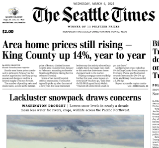 Berita utama di Seattle Times dan tempat lain buruk: Paket salju lebih rendah dari Washington, yang berarti kebakaran hutan yang meningkat musim panas ini.