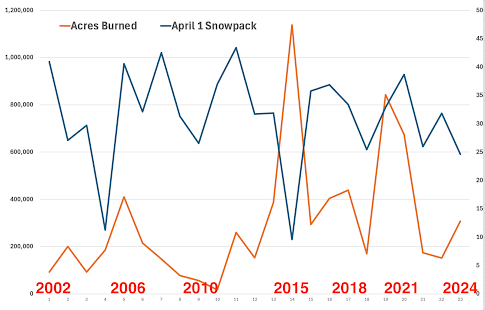 Setiap tahun, Seattle Times dan lainnya telah meramalkan musim kebakaran hutan yang besar menurut Snowpack dan Wrong (lihat di bawah), kebenaran dan sains.