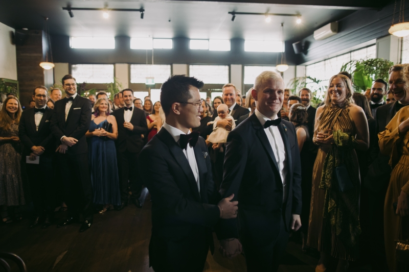 Kepala dan di atas foto -foto Yo Farrell melalui Pernikahan Melbourne Modern di Jeremy & Ryan di Glasseshuki Roque