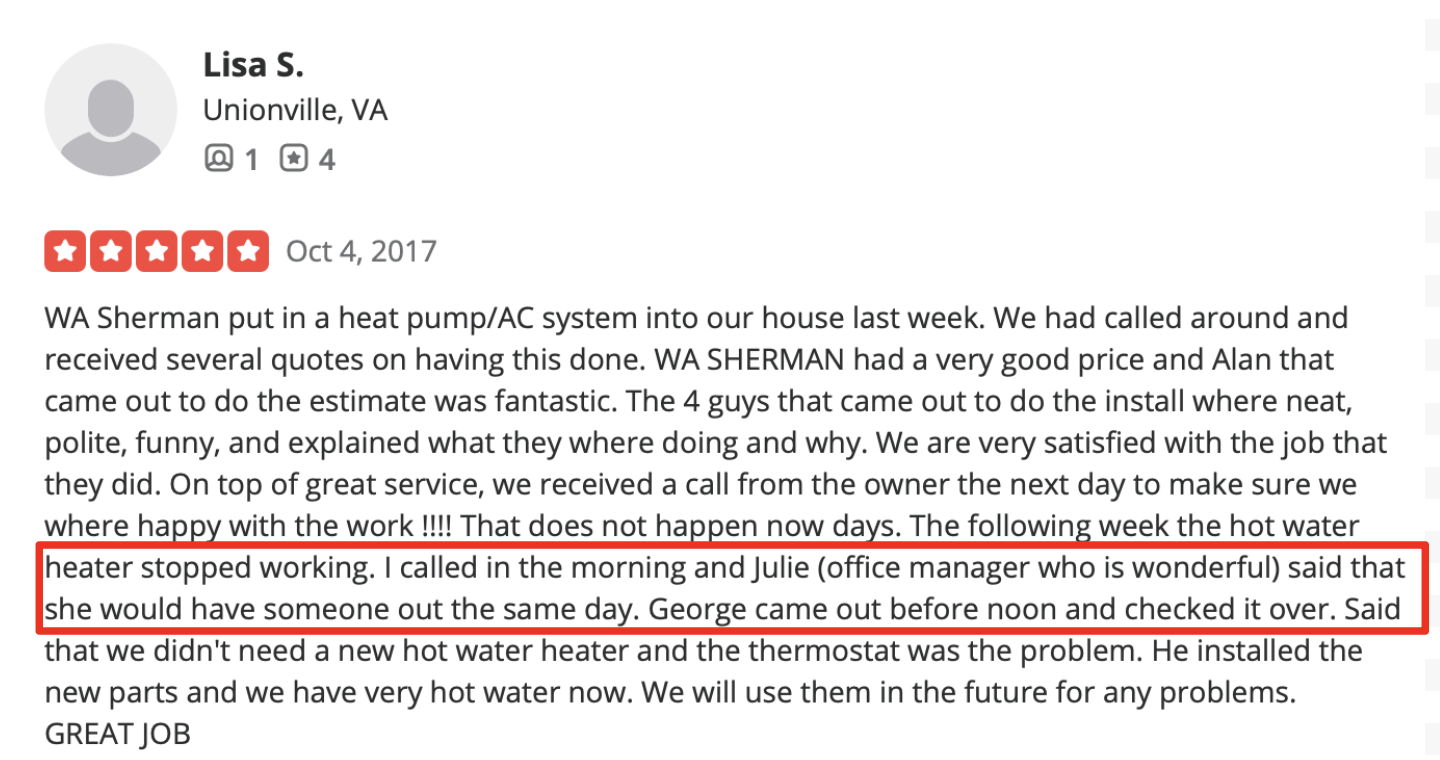 If you have a policy that customers don’t pay if the issue isn’t fixed in 24 hours from the time they call, that’s an excellent differentiator you could highlight in your content.