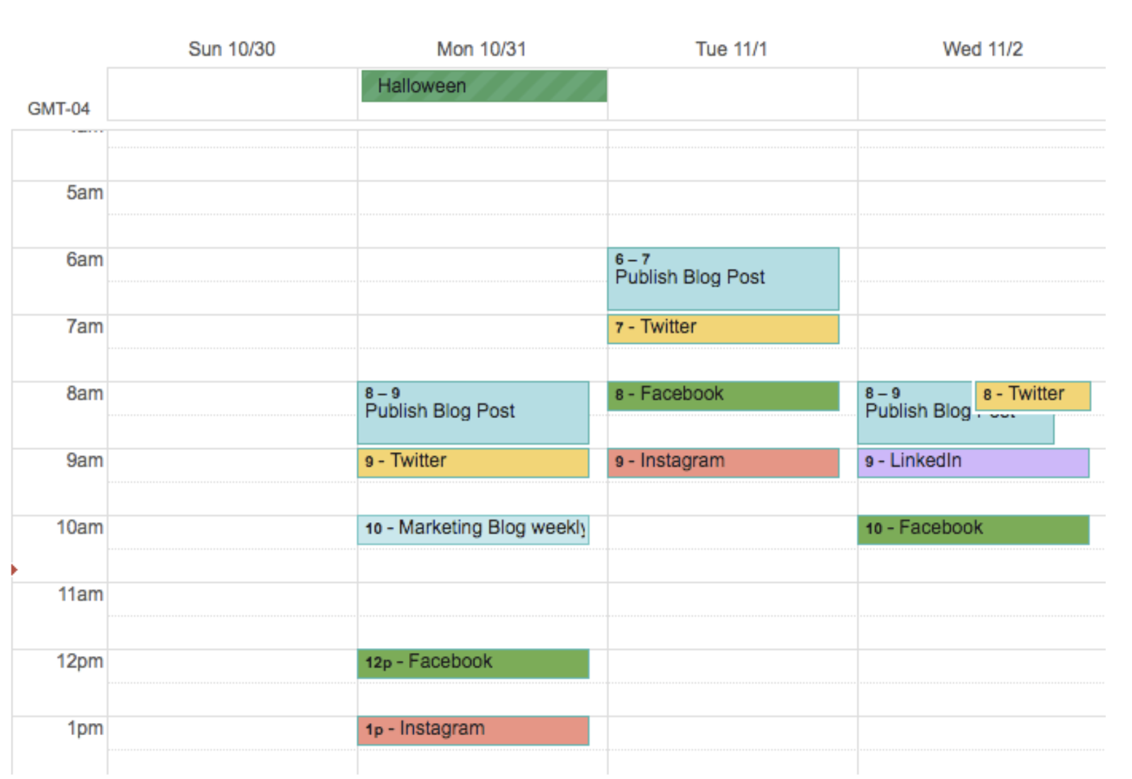 If you’re creating the content yourself, you can go one step further by blocking off time in your calendar for content creation. If you can’t find time for content creation, your content calendar is overly ambitious, and you might want to cut one or two channels.