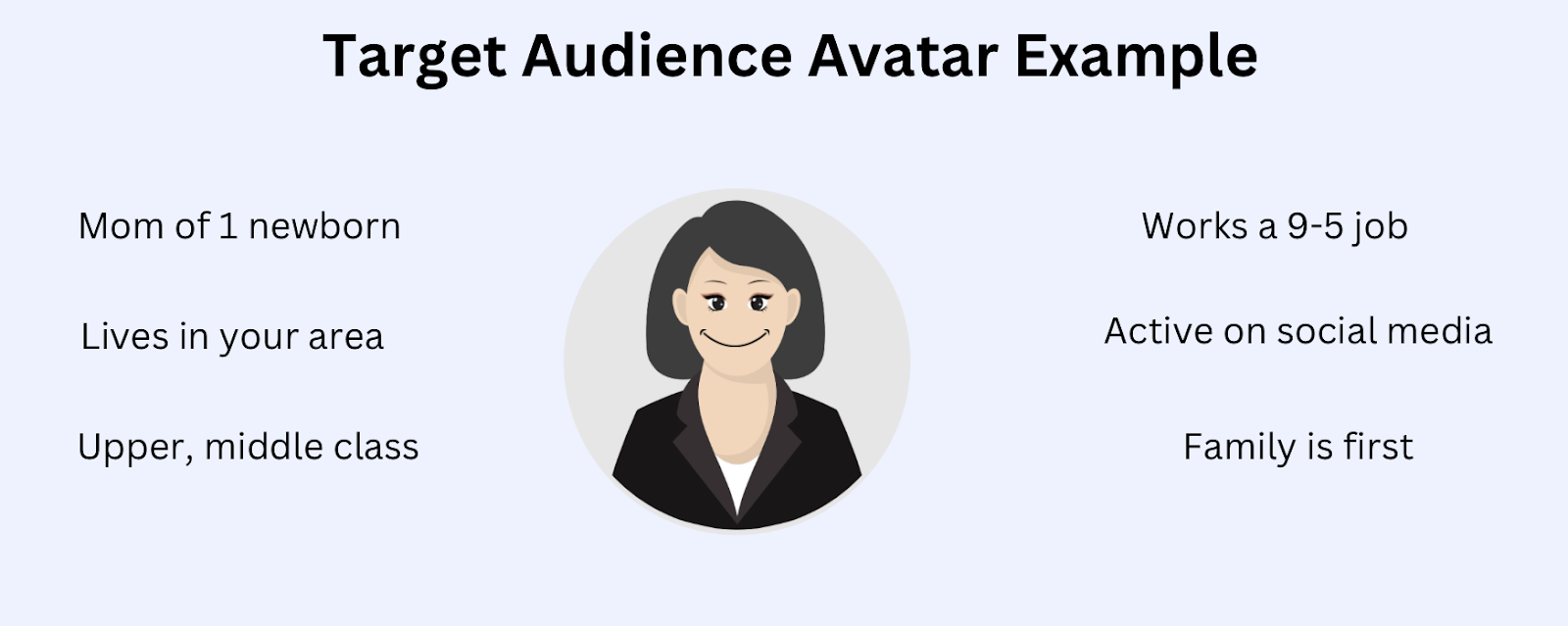 Here’s an example of a target audience avatar for a premium newborn photographer: