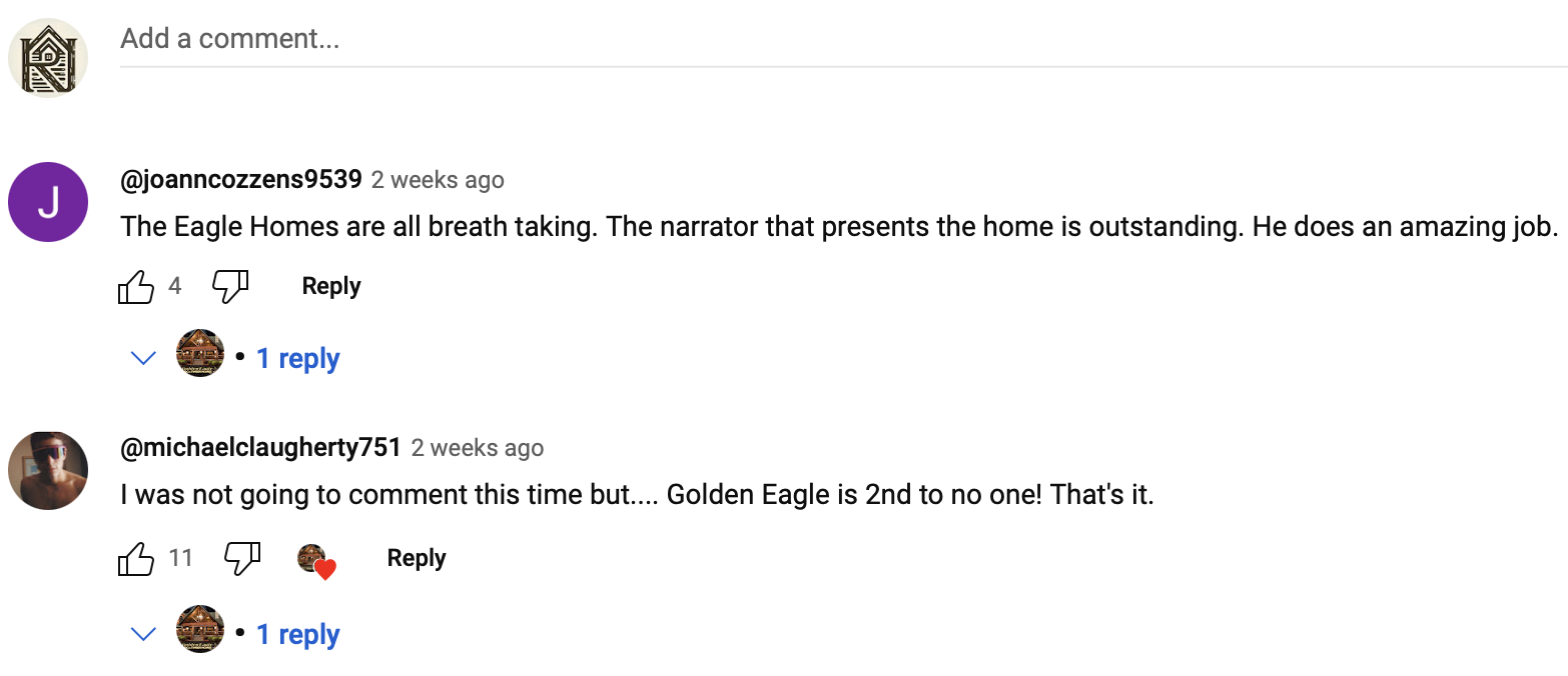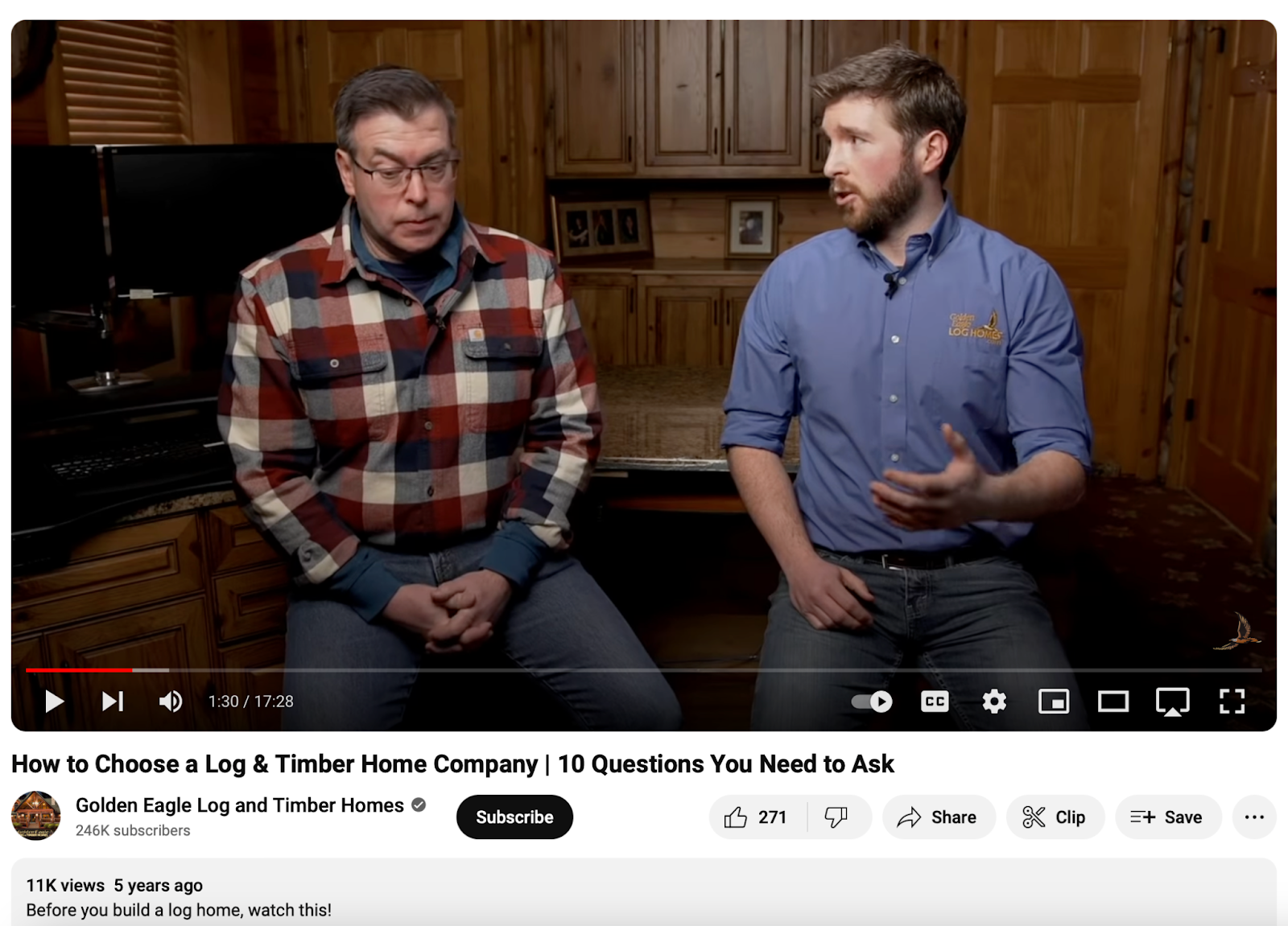 For example, Golden Eagle Log Homes often creates tour videos of homes they’ve built.