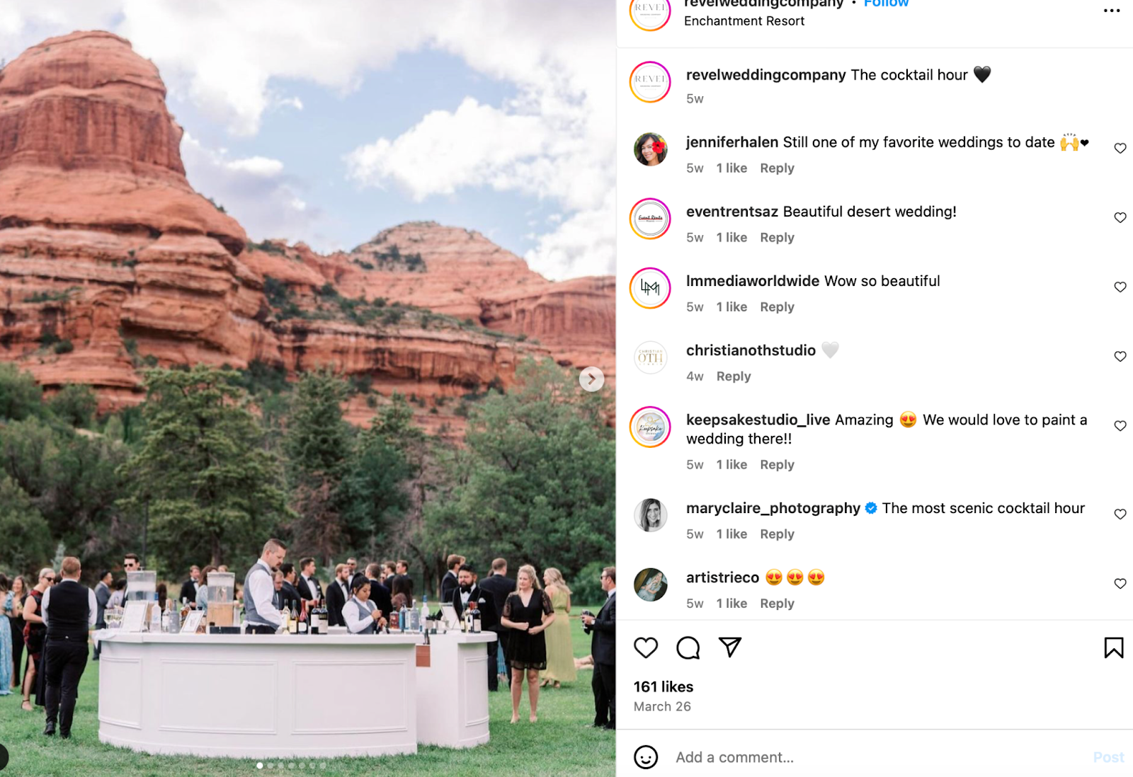 - Provide free marketing: This applies more to businesses, but if you provide a review or some other positive content for that business, they’re more likely to share your content. For example, if you’re a wedding planner, you could post content about the best wedding venues. As a result, those wedding venues would be more likely to share your content.