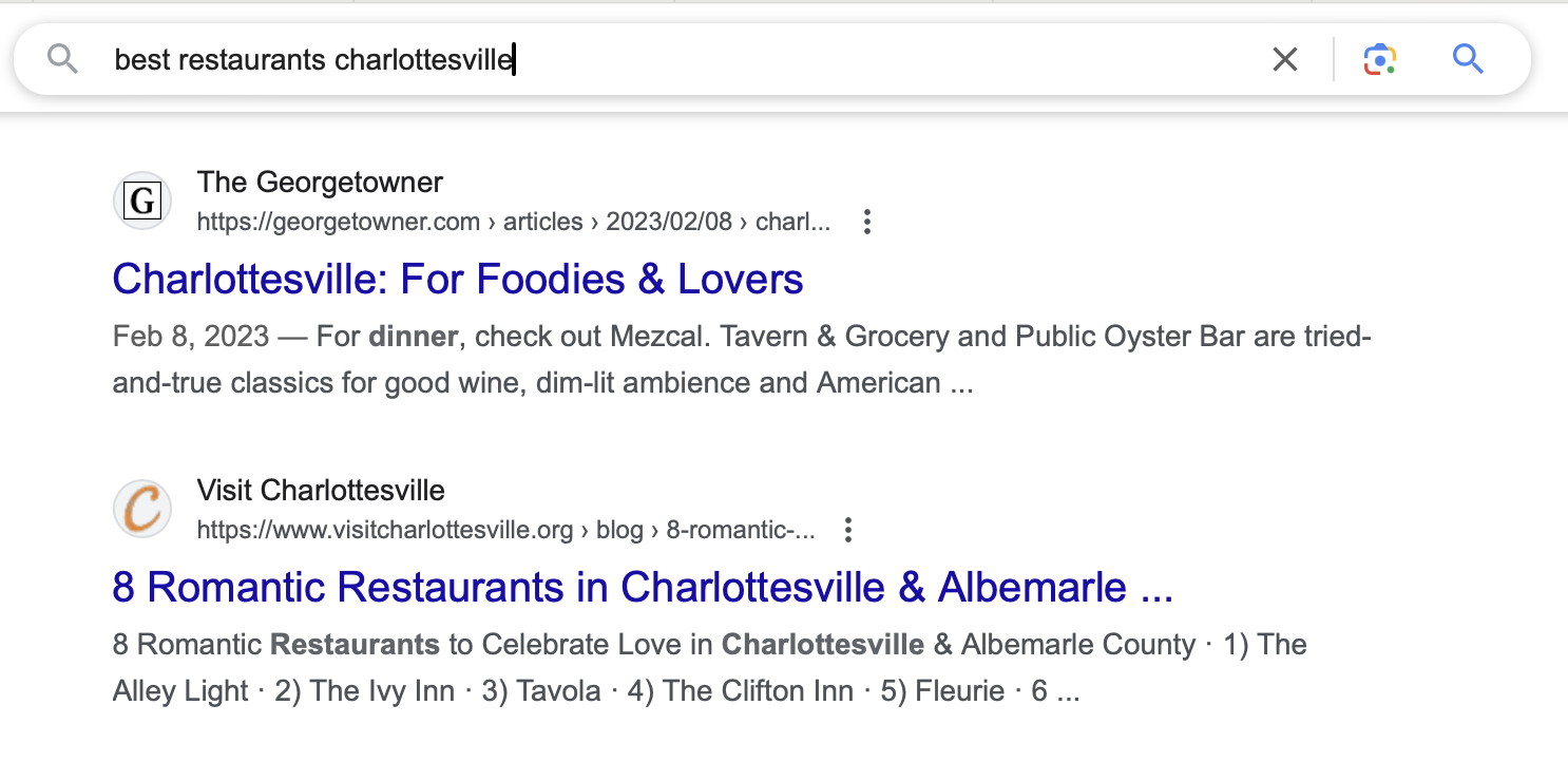 One of the best ways to find these local blogs and publications is to search for terms like “best restaurants in (city).”