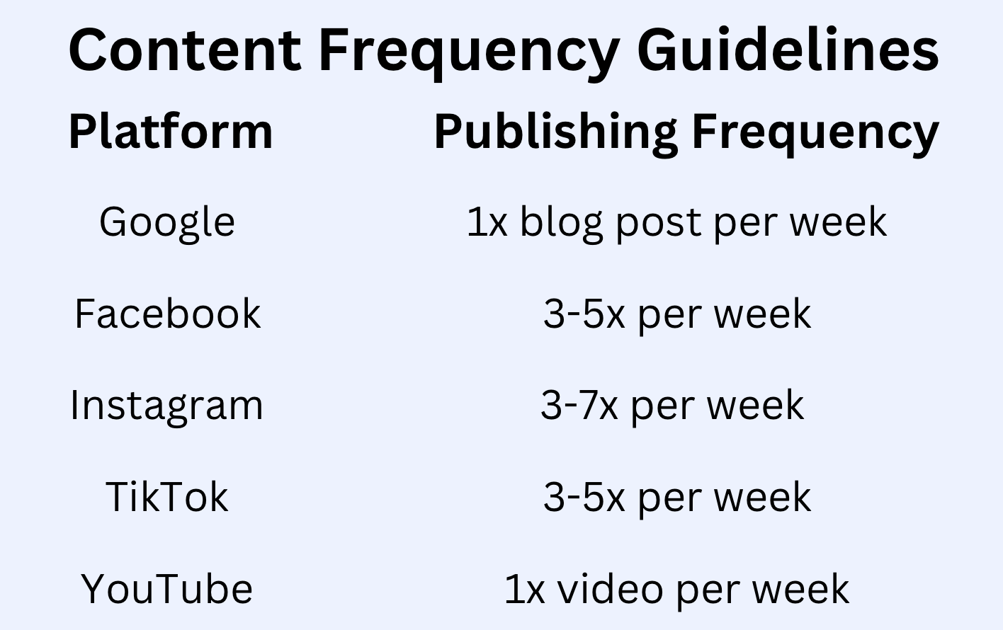 To give you a baseline of approximately how often you should publish content to be competitive on each platform, here are some general guidelines:
