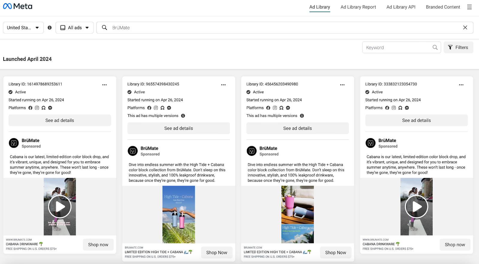 Unfortunately, not all platforms offer ad transparency, so you might have to manually search for your competitor’s brand on the other platforms.