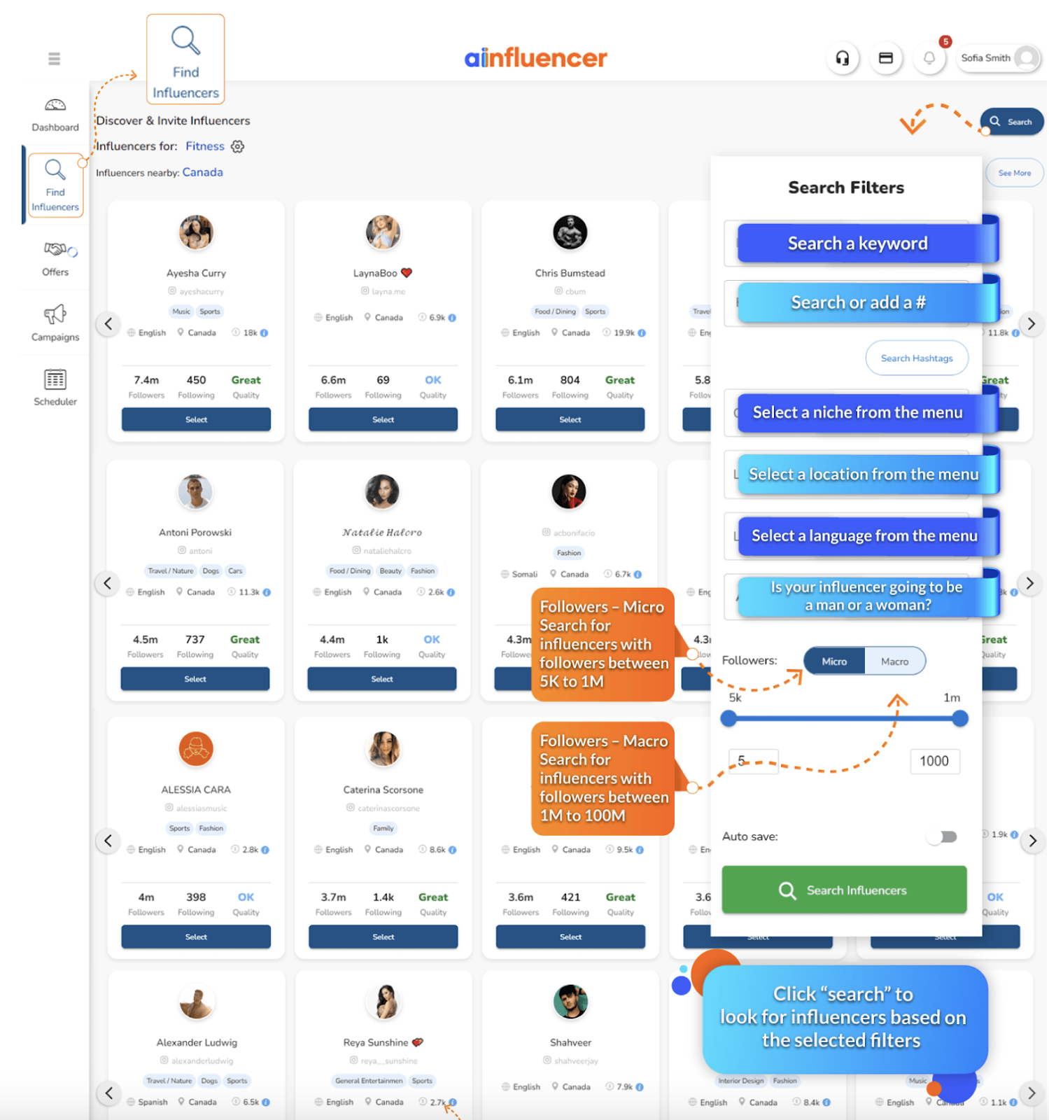 If you’re looking for social media influencers, you can use a tool like AI Influencer to find influencers located in your area.