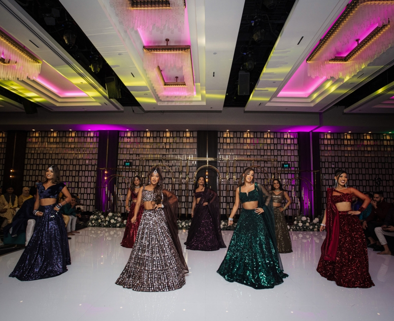 Resepsinya selalu menampilkan perpaduan pengaruh Barat dan India, menciptakan suasana meriah dan berenergi tinggi. Musiknya harus mencerminkan campuran ini, dengan variasi lagu yang membuat pesta tetap berlangsung sepanjang malam: