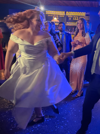 Untuk aksesori, foto Dennings terinspirasi oleh hari pernikahannya – dia memiliki kepala yang indah ini dan cara kerudung itu terlihat di wajahnya sangat halus. Saya akhirnya memilih mahkota mutiara dan berlian dengan perasaan antik, menciptakan panen kerudung mengambang yang lezat yang duduk dengan indah di bahu dan wajah saya, menciptakan efek malaikat yang terinspirasi oleh penampilan landasan pacu Jean-Paull Gaultier yang terinspirasi oleh Madonna. Kami juga menggabungkan elemen serangga di seluruh pernikahan – Saya suka lebah sepenuhnya, jadi saya menemukan induksi lebah dan mutiara yang cocok dengan jilbab sepenuhnya. Untuk posisi saya, saya berhasil menemukan sepasang impian saya tentang sepatu beludru ganda dari Bred di Facebook Marketplace-yang berasal dari kelompok beberapa tahun yang lalu, dan menemukan bahwa dia merasa seperti nasib.