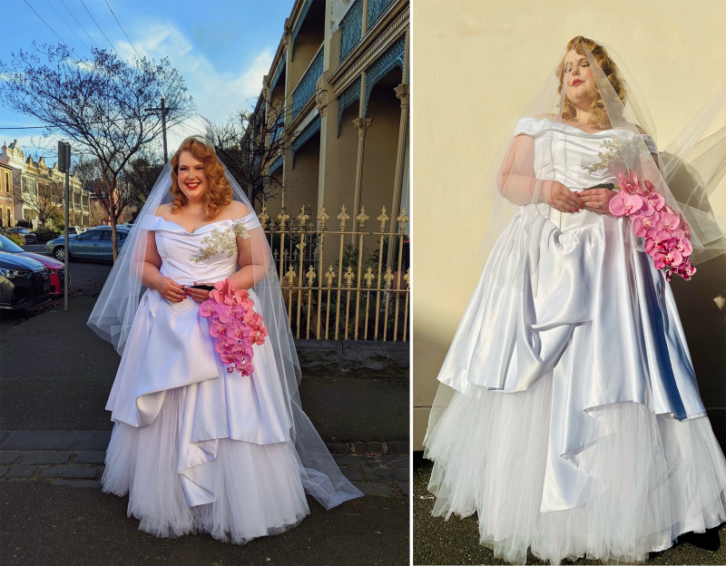 Saya merasa cantik dan menyukai diri saya sendiri, dan saya pikir itu adalah bagaimana setiap pengantin berharap untuk merasakan hari pernikahan mereka. Gaun itu sempurna karena terbuat dari banyak perhatian, cinta dan keterampilan, dan mencerminkan semua estetika yang saya sukai – yang keras, aneh, abadi, dan teater.