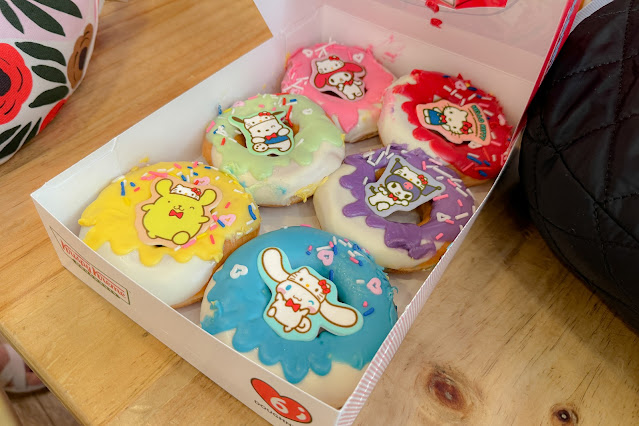 Saya mencoba donat Hello Kitty (cokelat rasa apel) dan donat Kuromi (cokelat rasa marshmallow). Dua rasa yang asing, tapi sebenarnya sama-sama enak! Mereka berpadu sempurna dengan adonan lembut khas Krispy Kreme.