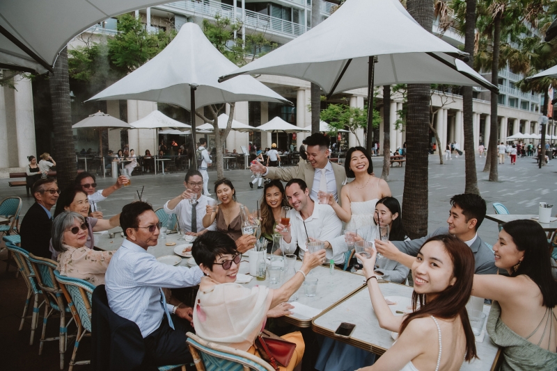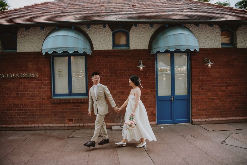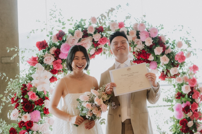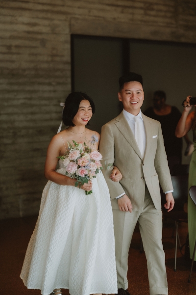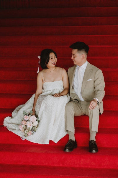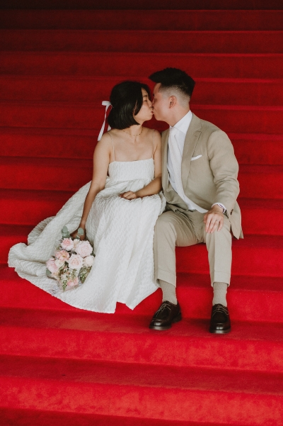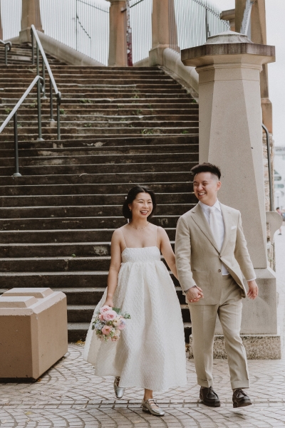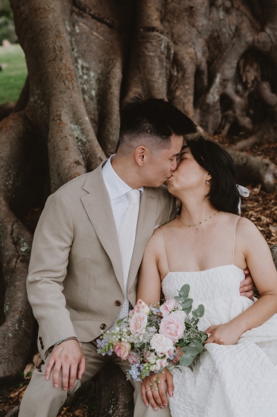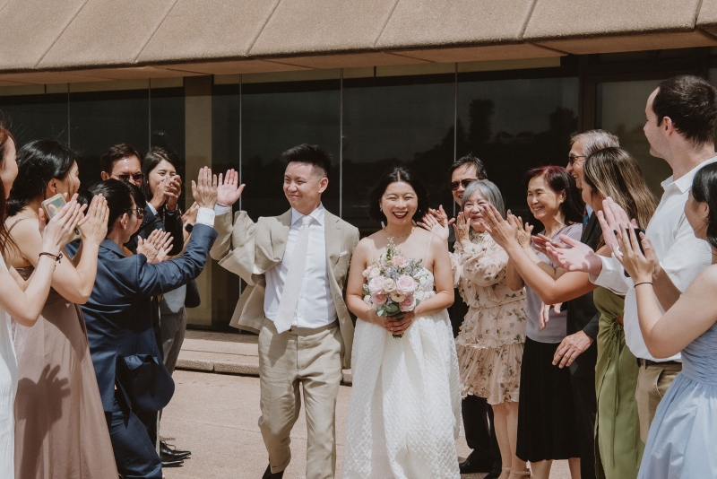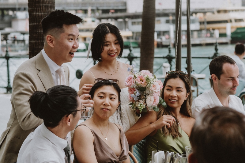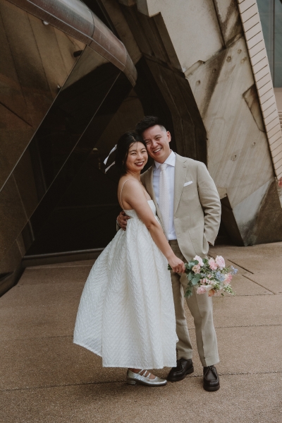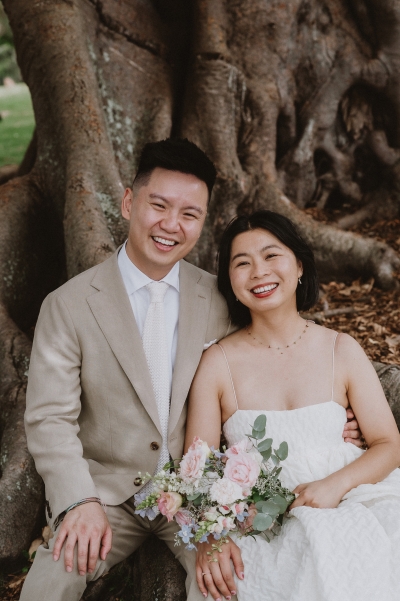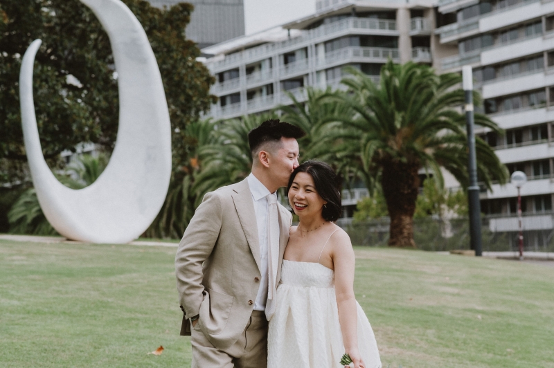 While they took photos in Circular Quay, Nathan and Tuyet made sure to take some time to grab frozen Cokes from Maccas, allowing them to slow down and enjoy the day. “We are super happy with how our day went—it was chill, joyous, and special! Our relationship has always been full of laughs and exploring things with no rush together. We felt like our wedding day was not rushed at all, and we had plenty of time to savour the day with our nearest and dearest.”
