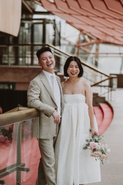 After years of music and shows, Tuyet and Nathan have always marvelled at the architecture of the Sydney Opera House. On Valentine’s Day this year, the couple had their dream micro wedding in the heart of the Opera House. Their intimate ceremony, followed by the chill feast at Palace Chinese, was their perfect wedding. Rachel Gutierrez Photography captured each fun moment and showcased the incredible architecture around them.