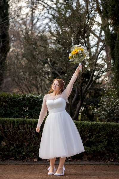 Saya mengenakan gaun yang saya temukan online! Itu toko Esty bernama Piondress. Saya selalu menginginkan gaun midi dengan garis leher manis, dan saya menemukan apa yang saya inginkan di sana, jadi saya memutuskan dan memesannya. Situs ini penuh dengan ulasan pengantin asli dan mereka juga menyediakan ukuran khusus. Saya sangat terkesan dengan kualitasnya dan langsung jatuh cinta! Saya sangat merekomendasikan.
