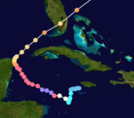 Milton mungkin terlihat mirip dengan Wilma pada tahun 2005 (peta di bawah).