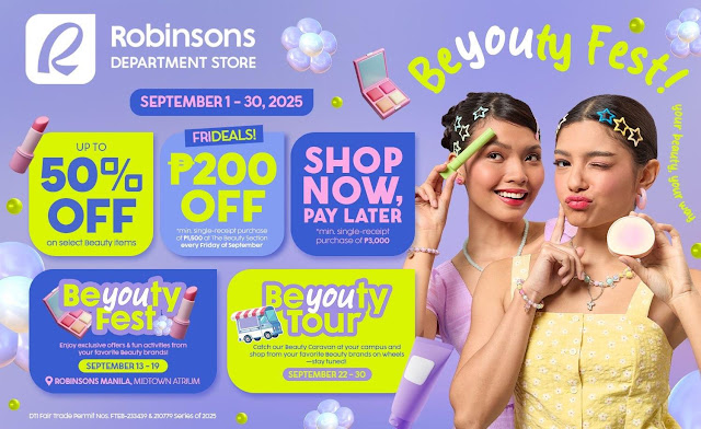 Pengalaman Beyouty Fest 2025 dengan mengunjungi department store Robinsons terdekat dan bergabung dengan acara apa pun dari 1-30 September 2025. Untuk pembaruan dan informasi lebih lanjut, ikuti toko Robinsons Department Store Facebook, Instagram, dan Tiktok. Bagikan kenangan indah Anda di Expo dengan tag #rdsbeautyfair2025.