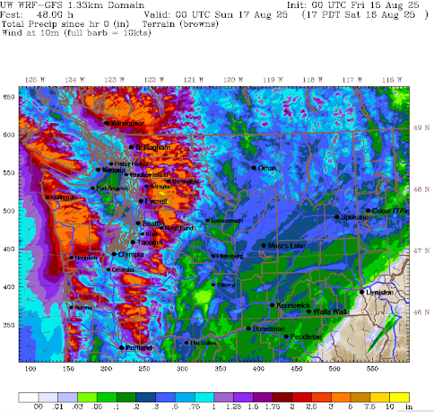 Pada hari Jumat, hujan menghantam Northwest, dengan beberapa stasiun yang menerima curah hujan umum sepanjang Agustus dalam satu hari. Tidak ada catatan percepatan harian tahunan yang dihancurkan. Tapi ada banyak stasiun di luar not Untuk hari itu–