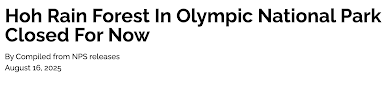 Tingkat sungai tinggi menutup banyak jalan, termasuk pintu masuk Lembah Sungai Hoh.