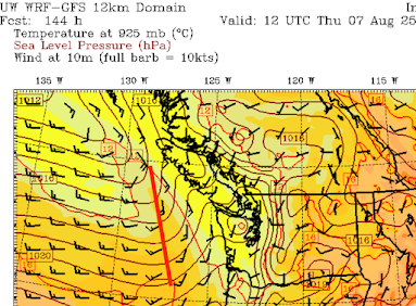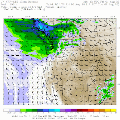 Model WRF resolusi tinggi menunjukkan basah di atas Washington Western dan Southern SM pada hari Kamis 24 jam. Pada akhir 17,00 jam. Pada hari itu.