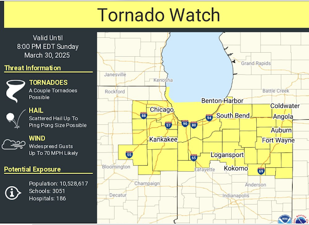 Waktu 13:20. Jam tangan tornado, termasuk Chicago.